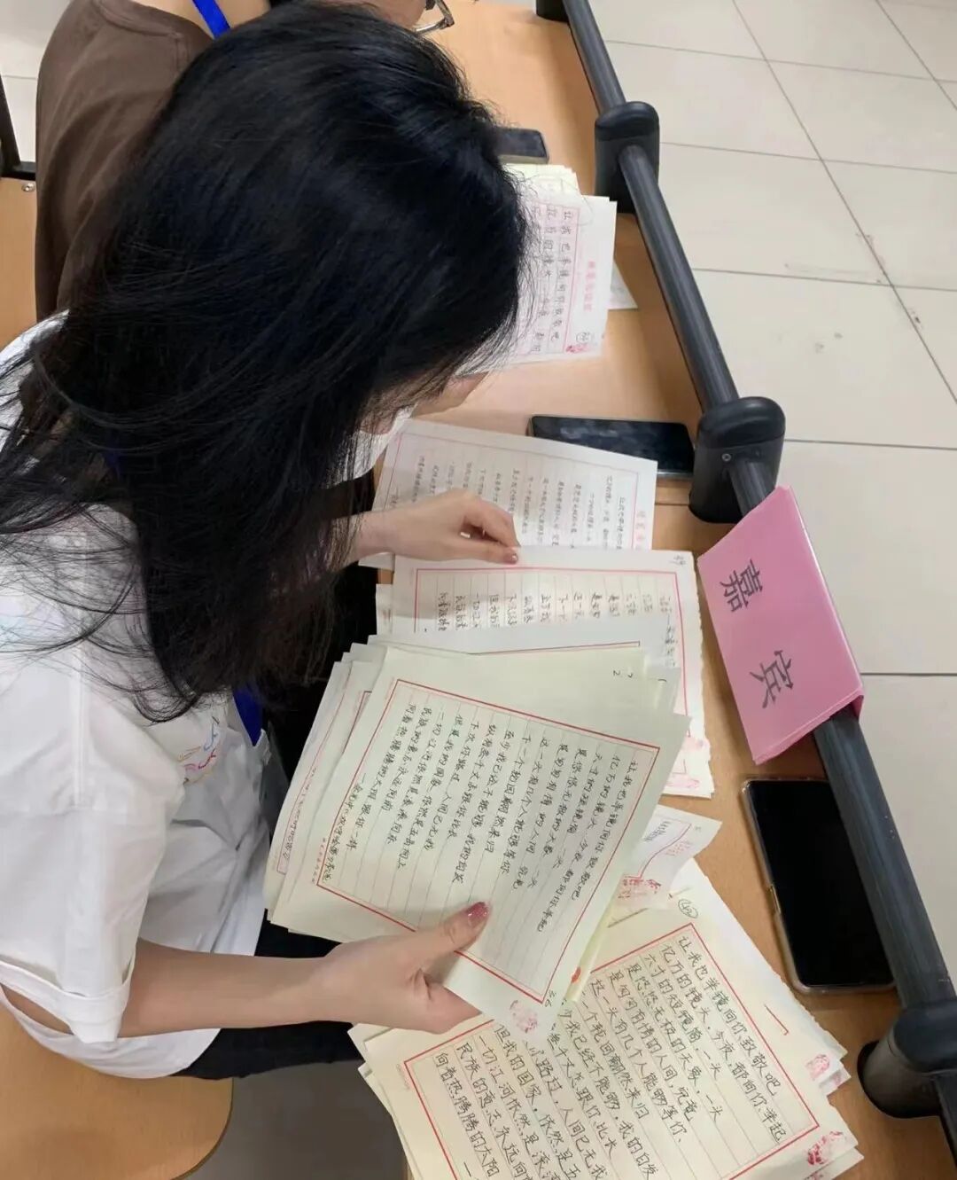评委们从笔画规范、字体工整、布局美观